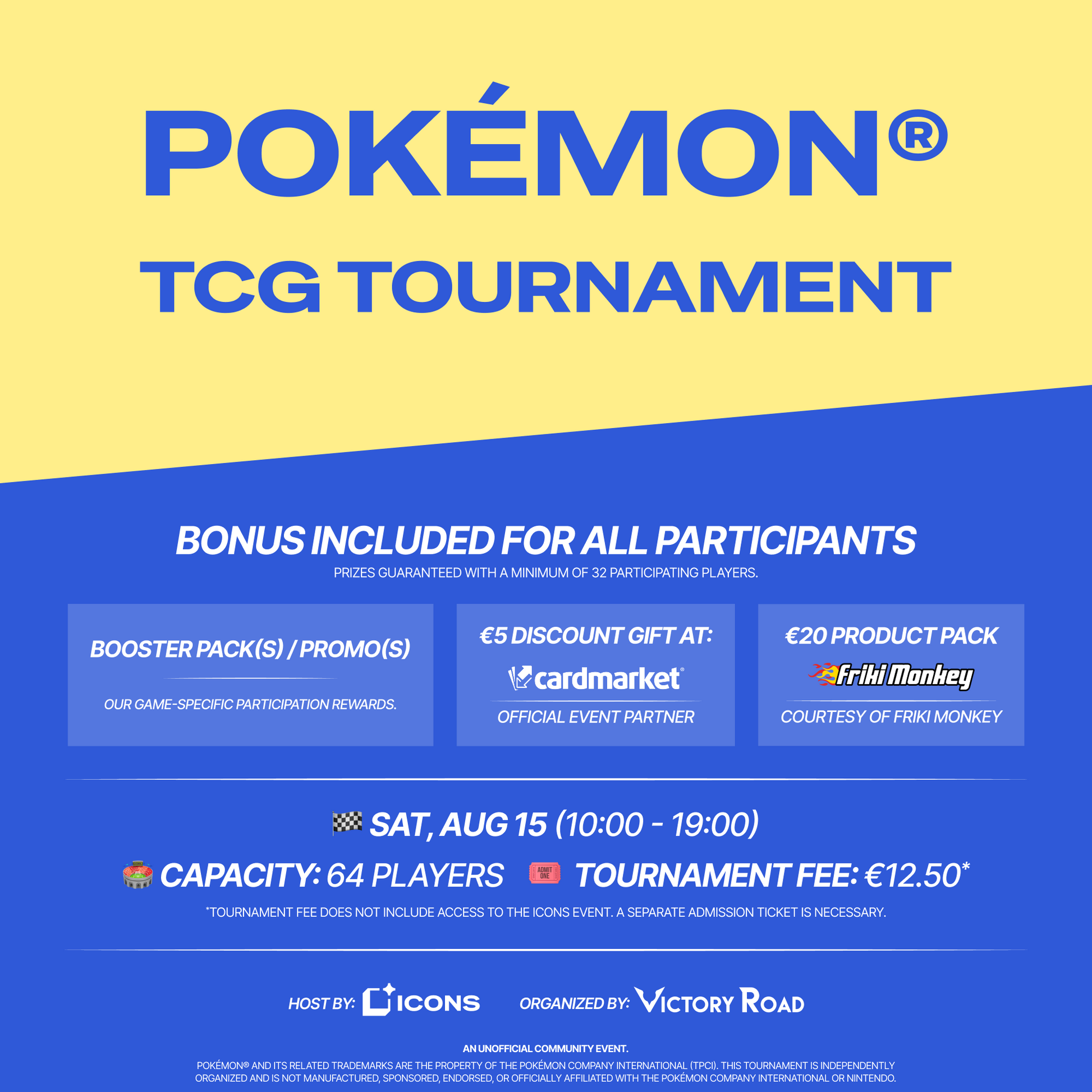 | Participation | 1x Pokémon TCG Booster Pack + €20 Friki Monkey Pack + €5 Cardmarket Gift Card |